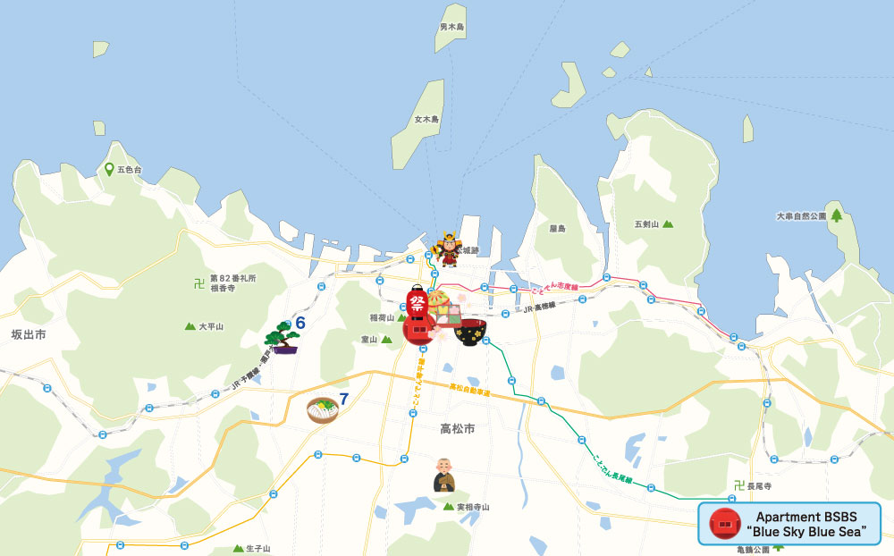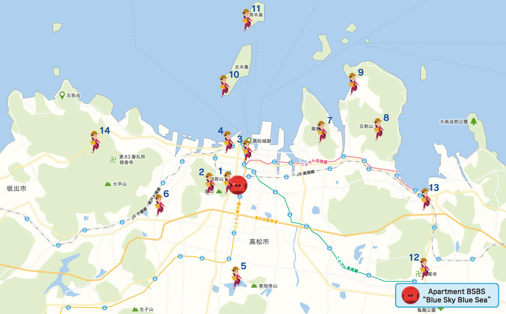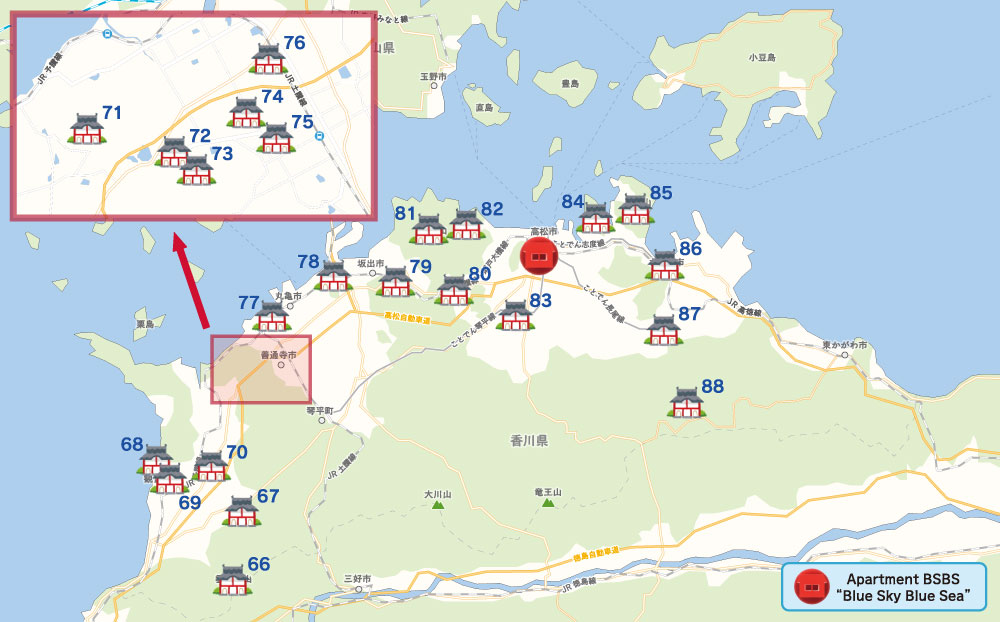 86志度寺Shidoji87長尾寺Nagaoji88大窪寺Okuboji■ Travel from the Apartment