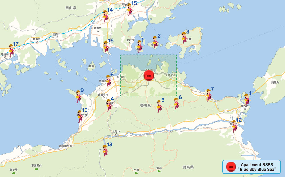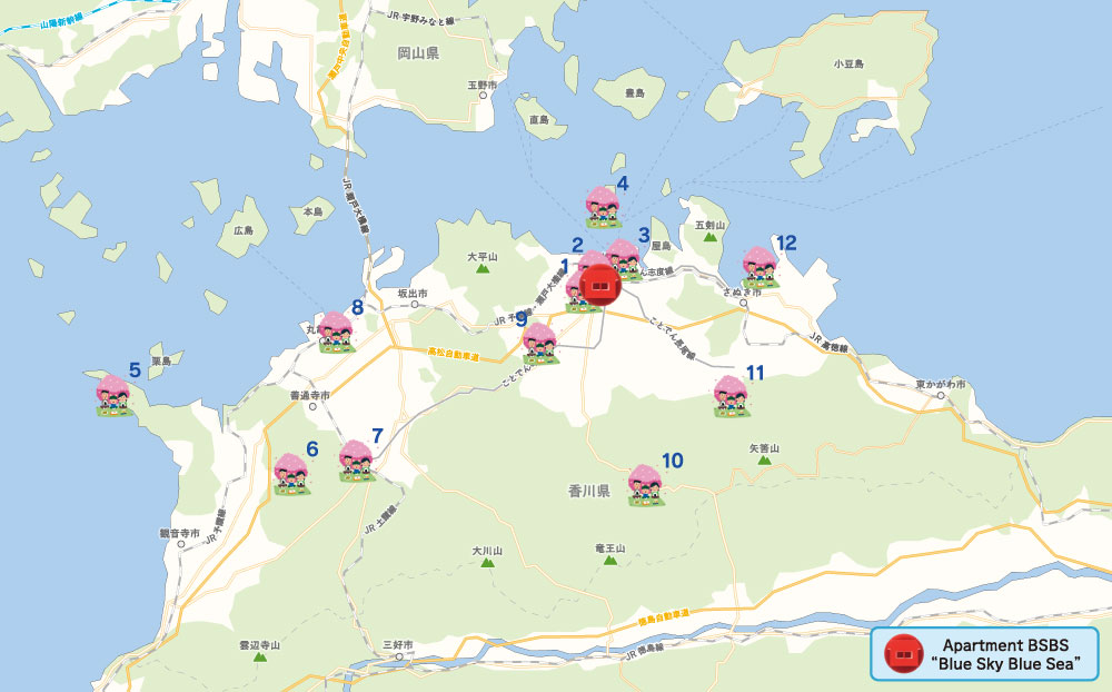 From Blue Sky Blue Sea, you can visit 23 temples located in Kagawa Prefecture within one week by using public transportation.