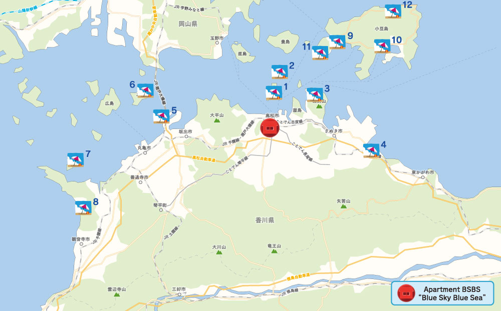 83一宮寺Ichinomiyaji84屋島寺Yashimaji85八栗寺Yakuriji■ Travel from the Apartment